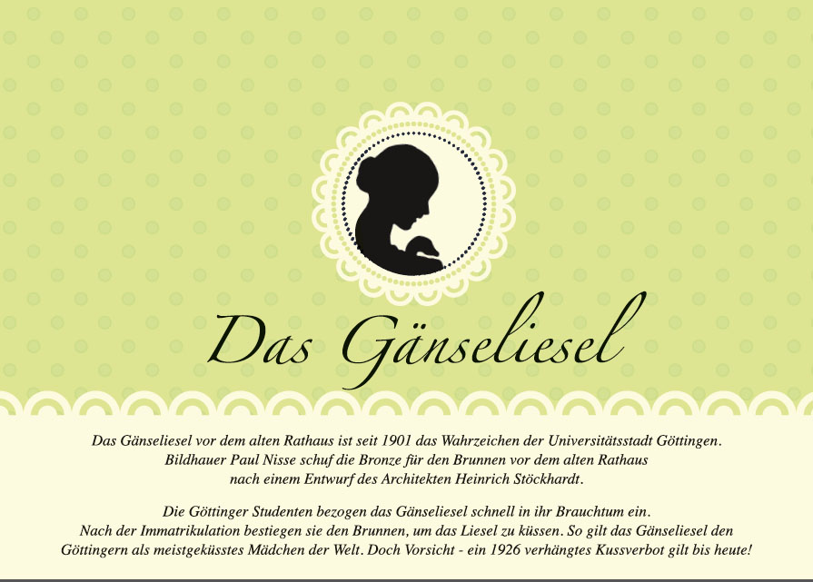 Die fünfte Postkarte ist entworfen. Diesmal mit einem Motiv für Göttingen Postkarten-Motiv V. "Das Gänseliesel"