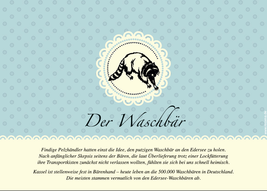Die nicoma hat sich etwas einfallen lassen: Regelmäßig werden wir in Zukunft nicoma-Postkarten gestalten, die man versenden kann. Wir starten mit: Postkarten-Motiv I. "Der Waschbär".