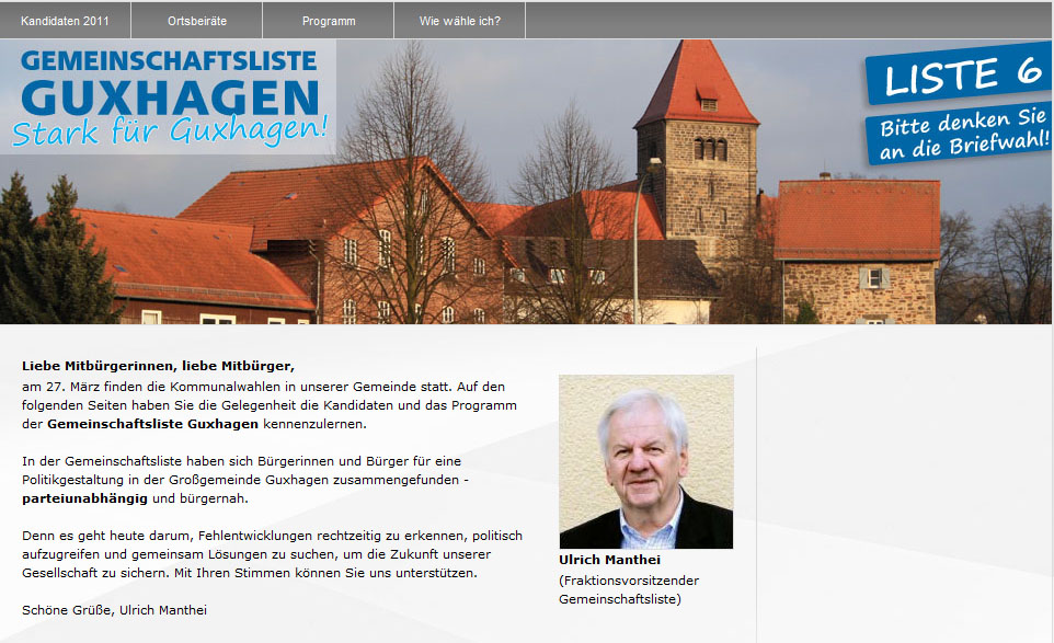 Aufgabe: Aufgabe war die Gestaltung einer eigenständigen Website zu den Kommunalwahlen 2011. Die Seite sollte nach den Wahlen weiterhin im Einsatz bleiben.